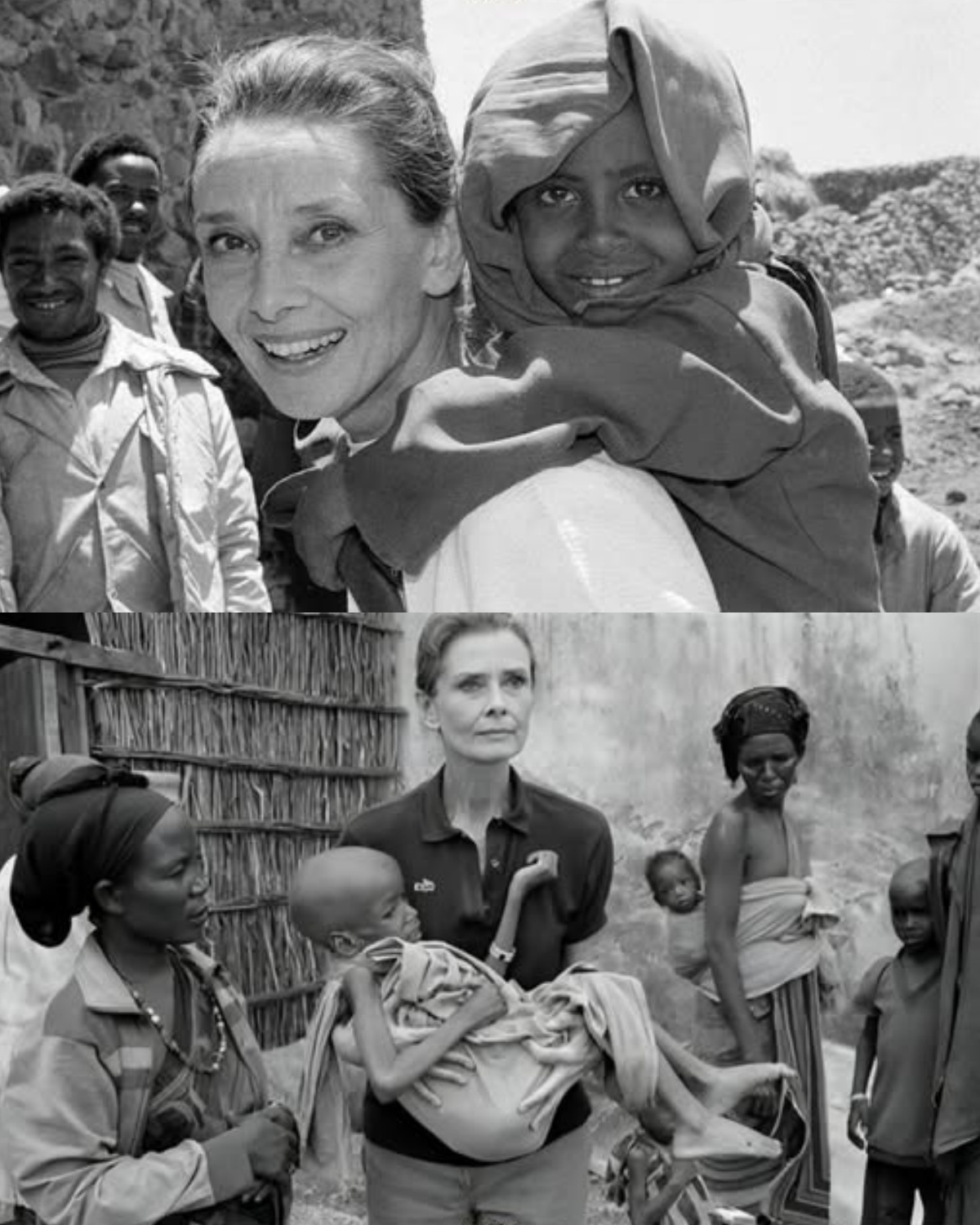 Decades later, when the world worshipped her as the radiant star of *Breakfast at Tiffany’s*, Audrey made a choice that stunned Hollywood. She stepped away from the spotlight, trading red carpets for dirt roads, and gave herself to UNICEF. She didn’t just pose for photos—she plunged into the heart of darkness, visiting camps in Ethiopia, Sudan, Somalia, and Bangladesh. Reporters were shocked to see her kneeling in the mud, cradling sick children, kissing fevered foreheads, whispering comfort in languages she barely knew. “They may be hungry, but they still need to be loved,” she insisted, her eyes burning with a fierce, maternal fire.