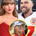 Travis Kelce’s mom showed her support for her son and his fiancée, Taylor Swift, at the Chiefs-Jaguars game on Oct. 6