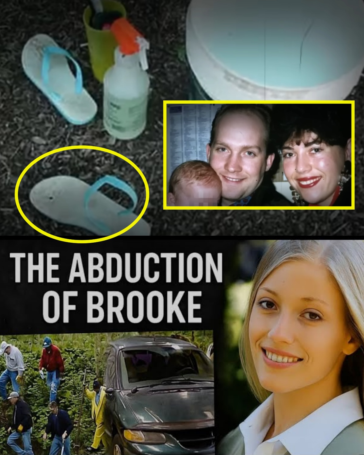 No goodbye, no phone call, no sign of struggle — except for a single, chilling clue. On the pavement near a bucket of cleaning supplies lay Brooke’s torn flip-flops. The straps were ripped apart, the soles twisted, and mud streaked across the ground.