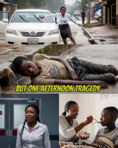 As Grace knelt, weak and sobbing on the dusty ground, a LUXURY CAR roared into the compound. Behind it, an army van. Two MASSIVE officers stepped out. The crowd FELL SILENT. The car door opened, and out stepped a man in a PERFECT SUIT. The crowd gasped—this was DIVINE. The boy once left to DIE was now a POWERFUL CEO.