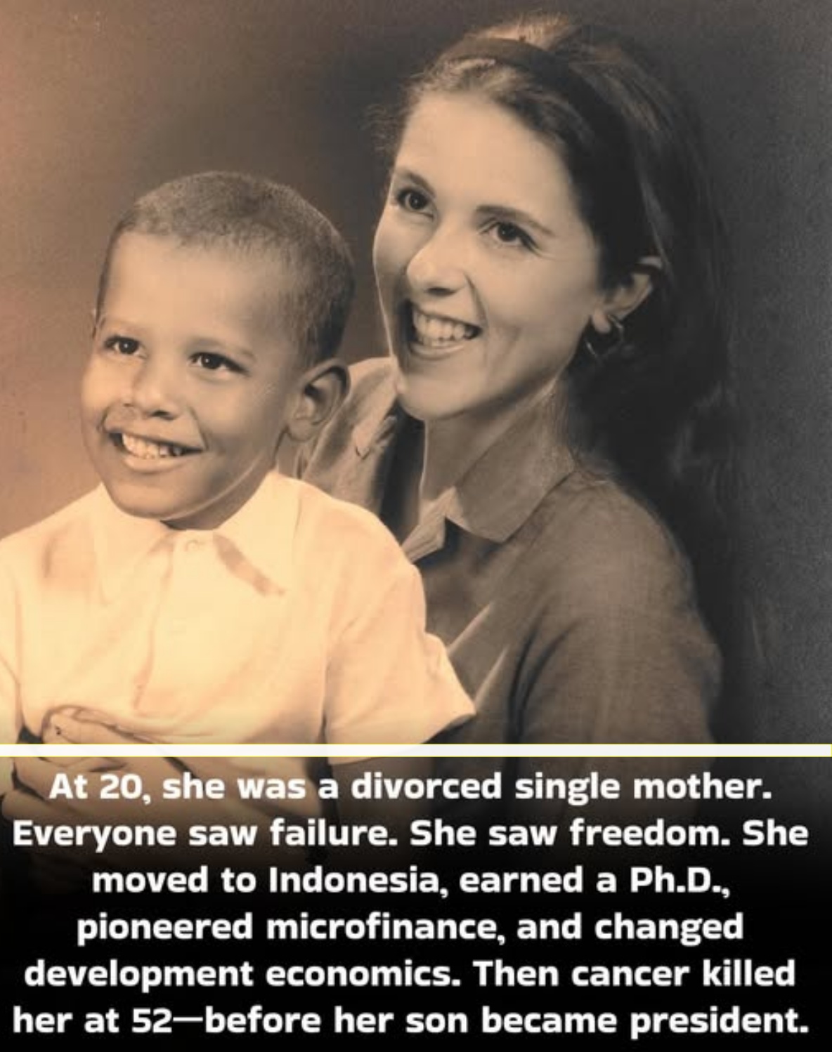 She moved to Indonesia with her six-year-old son, earned a Ph.D. studying rural blacksmiths, and pioneered microfinance programs that would lift millions out of poverty.