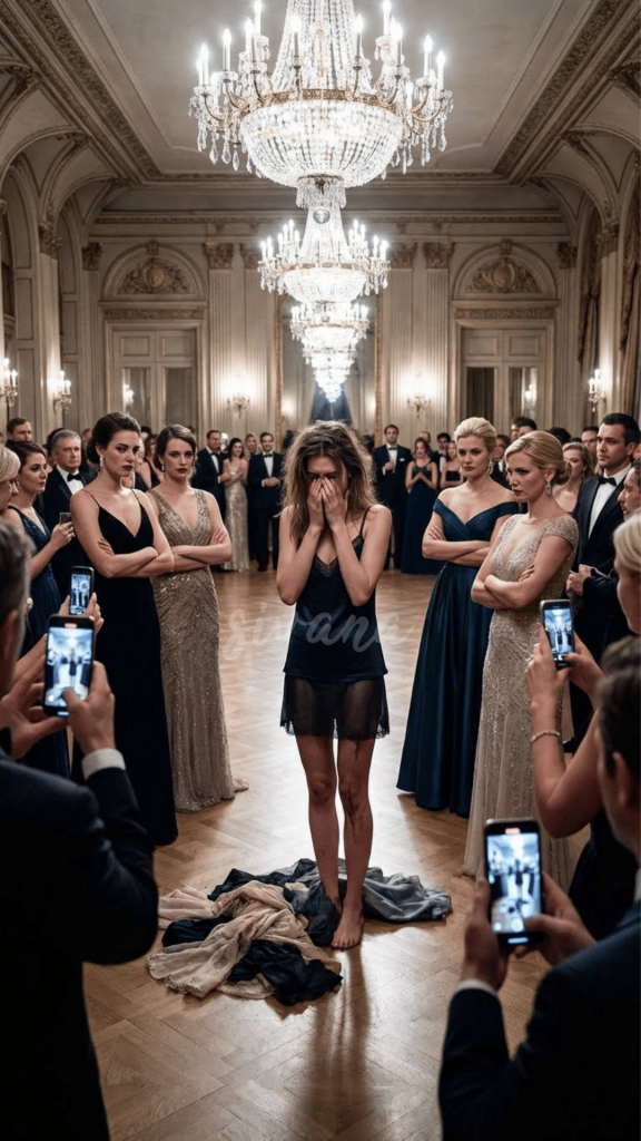 Gasps echoed through the grand hall as I stood there in my underwear under the chandelier’s glare. Two hundred phones captured the moment. I could hear the orchestra stop playing, the faint clicks of cameras, the whispers“ Thief… gold-digger…”