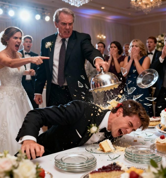 During the cake-cutting ceremony—surrounded by relatives taking pictures—he stormed toward me. Before I could react, he snatched the metal cake stand off the table and swung it like a weapon. It crashed into the side of my head with a sickening thud. My vision exploded into white. I fell backward, smashing into the dessert table as guests screamed.