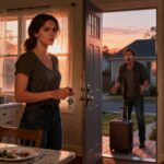 He looked from the suitcase to the box to the note, then walked up the steps and tried his key. Once. Twice. Harder the third time. When it still didn’t turn, he knocked.