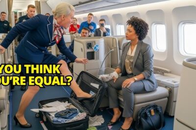 It began with a crack—a suitcase kicked across the aisle, scattering documents under first-class seats. In that moment, every head…